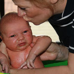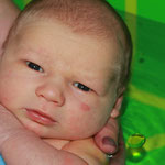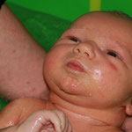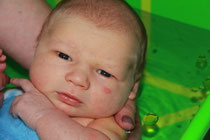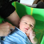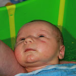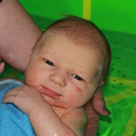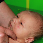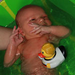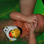 vor 2 Tagen ist meine Nabelschnur abhanden gekommen... da durfte ich dann heute mit Hebamme Iris mein erstes Wellness-Bad nehmen... Mama und Papa haben genau zugeschaut, damit wir das gaaaanz schnell wiederholen können... wenn die Fussball-Bade-Ente auch noch ein bischen "kooperativer" ist können wir demnächst bestimmt prima zusammen planschen... :o)